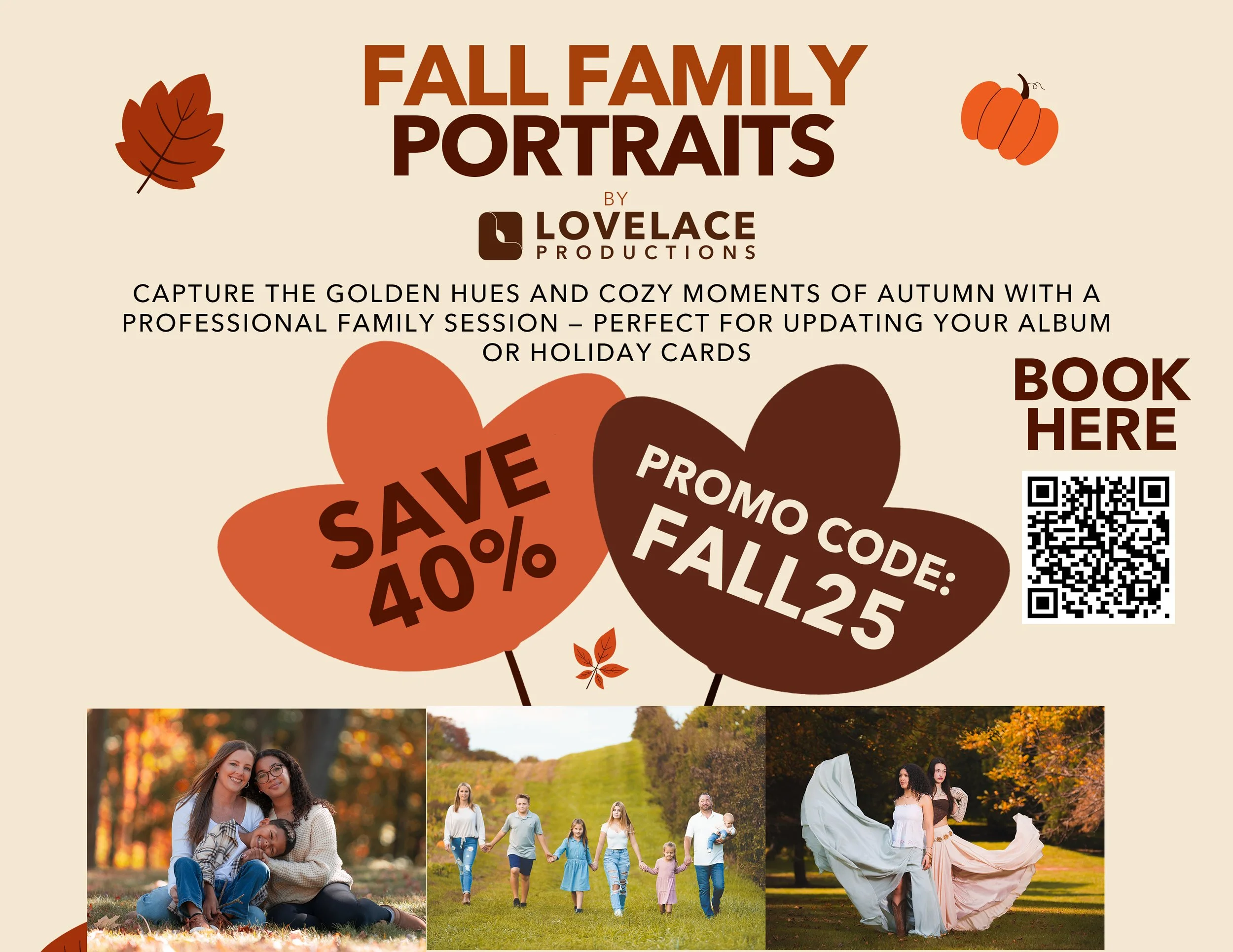 Celebrate the season with cozy vibes, golden light, and real smiles. Whether youβre refreshing your family album or creating your next holiday card, our fall sessions bring your story to life.